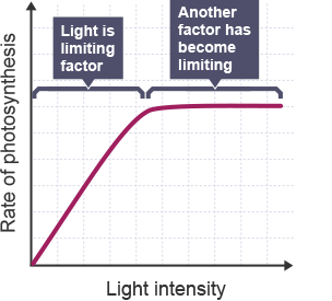 When light intensity is a limiting factor and light level is raised then the rate of photosynthesis increases steadily but up to a point