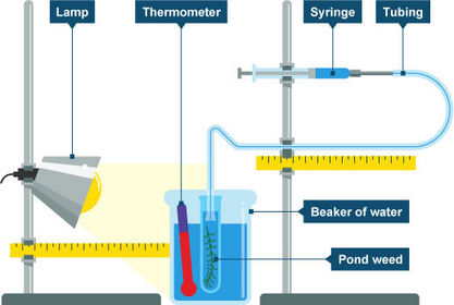 Variables to be controlled: temperature, time pond-weed is left_______________________________________________________________________________This experiment can be used to test the effect of temperature using a water bath of different temperaturesThis experiment can also be used to test effect of carbon dioxide using different concentrations of sodium hydrogen carbonate dissolved in the water (it releases carbon dioxide)