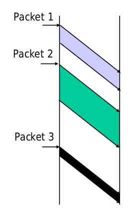 | packets | - contain some actual data that is to be delivered to the recipient ( can have a different size) - also needs administrative information (e.g. who the recipient is) - sender then occasionally sends out a packet, instead of continuous flow of data |