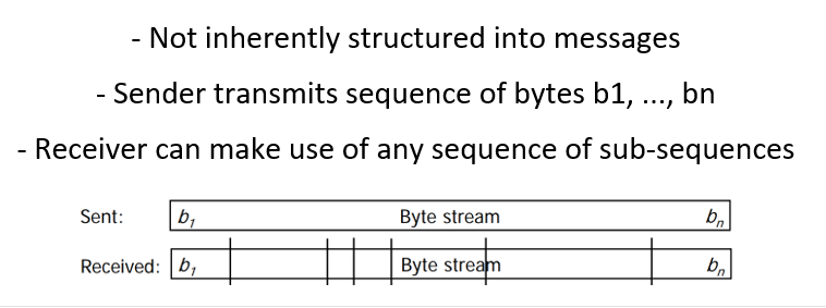 | Unit of data is individual byte, sequence of bytes or byte stream is transmitted (Service Primitives - Unit of Data) | |