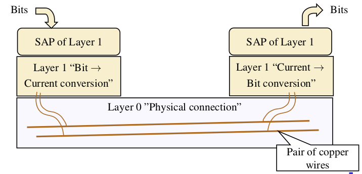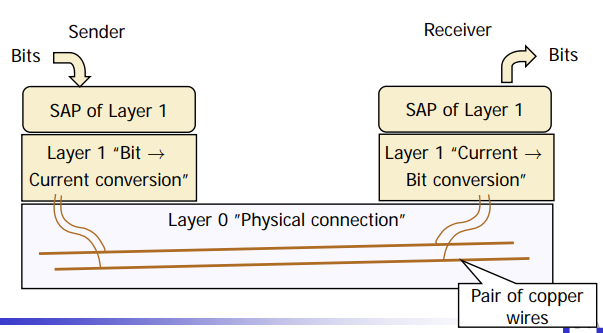 | Basic Service of Physical Layer: Transport Bits | - the physical layer should enable the transport of bits between two locations A and B - Abstraction: Bit sequence - correct, in order delivery |
