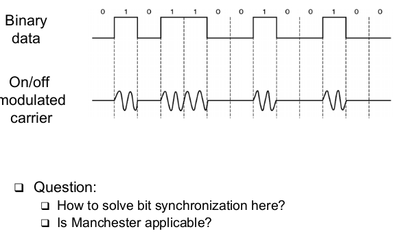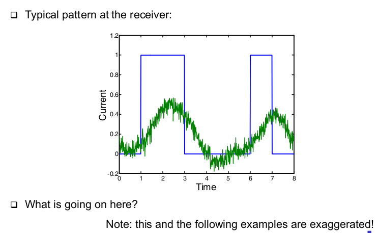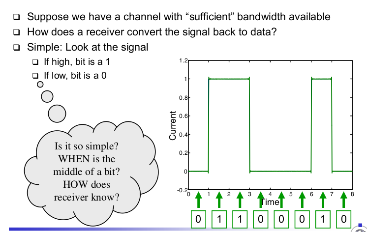 | When to Sample the Received Signal? | - The reveicer has to be synchronized with the sendere at the bit level -> the link layer will have to deal with fram synchronization -> there is also "character" synchronization - omitted here |