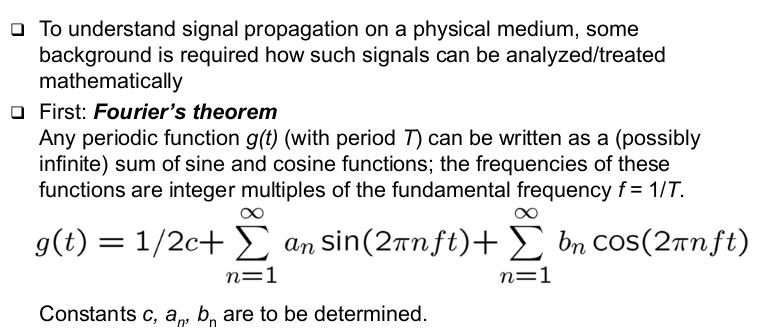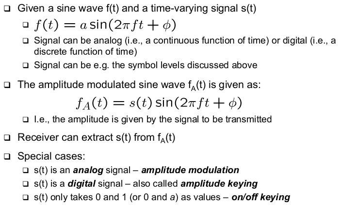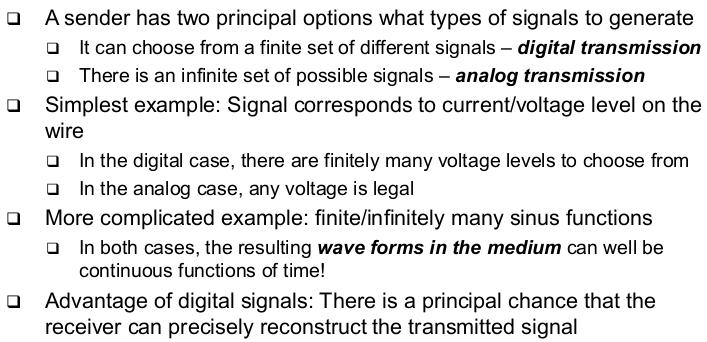 | What do we need to make (data) communication possible? | a means to transform bits into signals and from signals back into bits at the receiver |