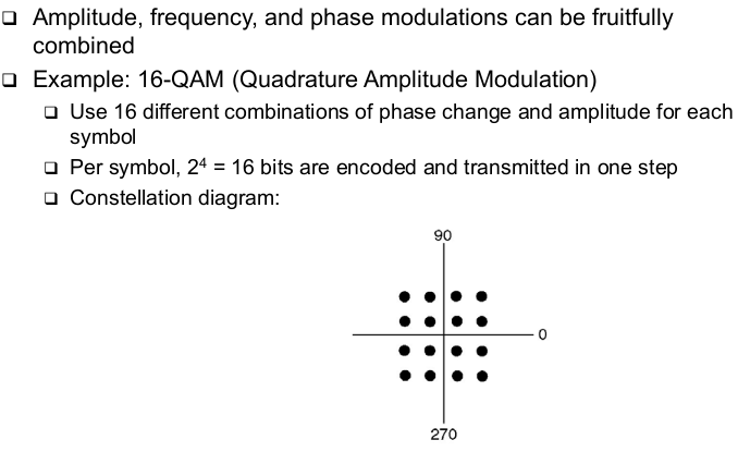 | Multiplexing: other options | - Code Division Multiplexing (CDM), Space Division Multiplexing (SDM) -> mostly relevant in wireless communication |