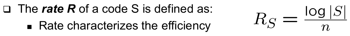 | Frame Sets - Code Books, Code | - A good code should have large distance and large rate - but arbitrary combinations are not possilbe --> For details: Information theory, Claude Shannon |