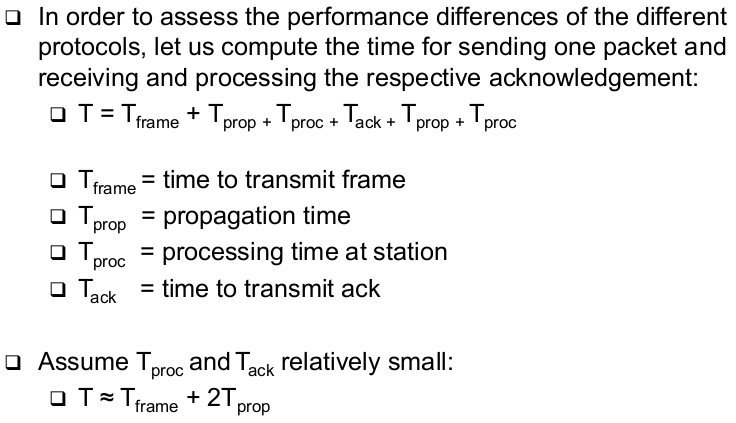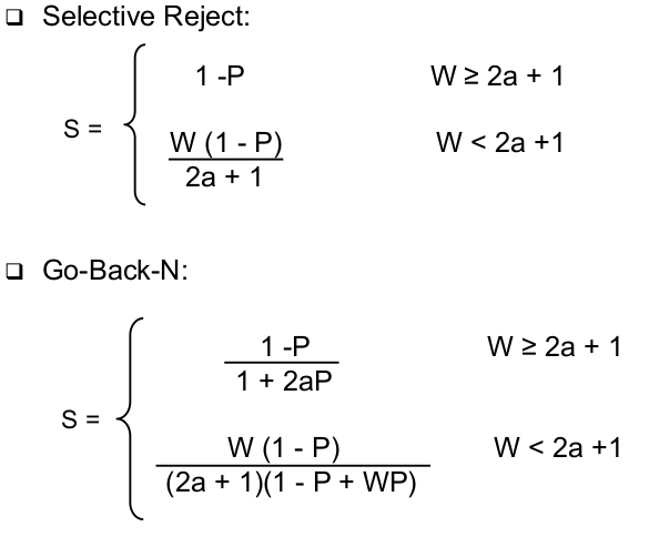 | Performance: Error-Free Sliding Windows ARQ (1) (what is W) | - Let W be the number of frames that the sender can send, before he has to wait for an acknowleadgement |