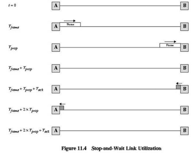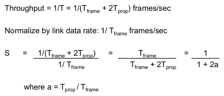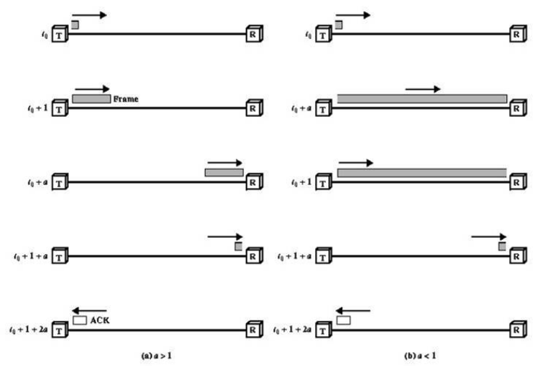 | Stop-and-Wait Timing (transmission time = 1; propagation time = a) | |