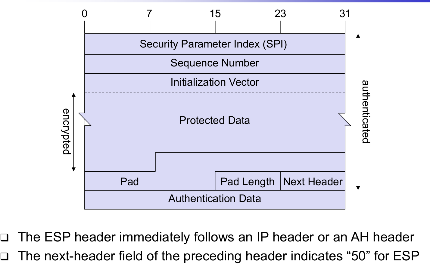 | IPSec: Encapsulating Security Payload (ESP) | |