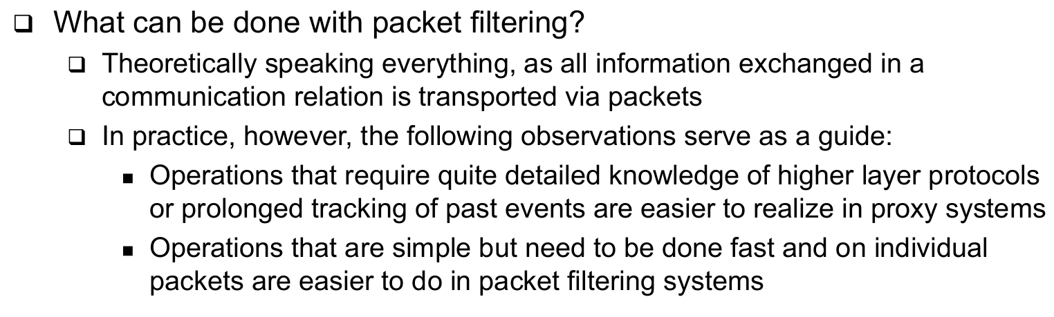 | Firewalls: Packet Filtering (What can be done with packet filtering) | |