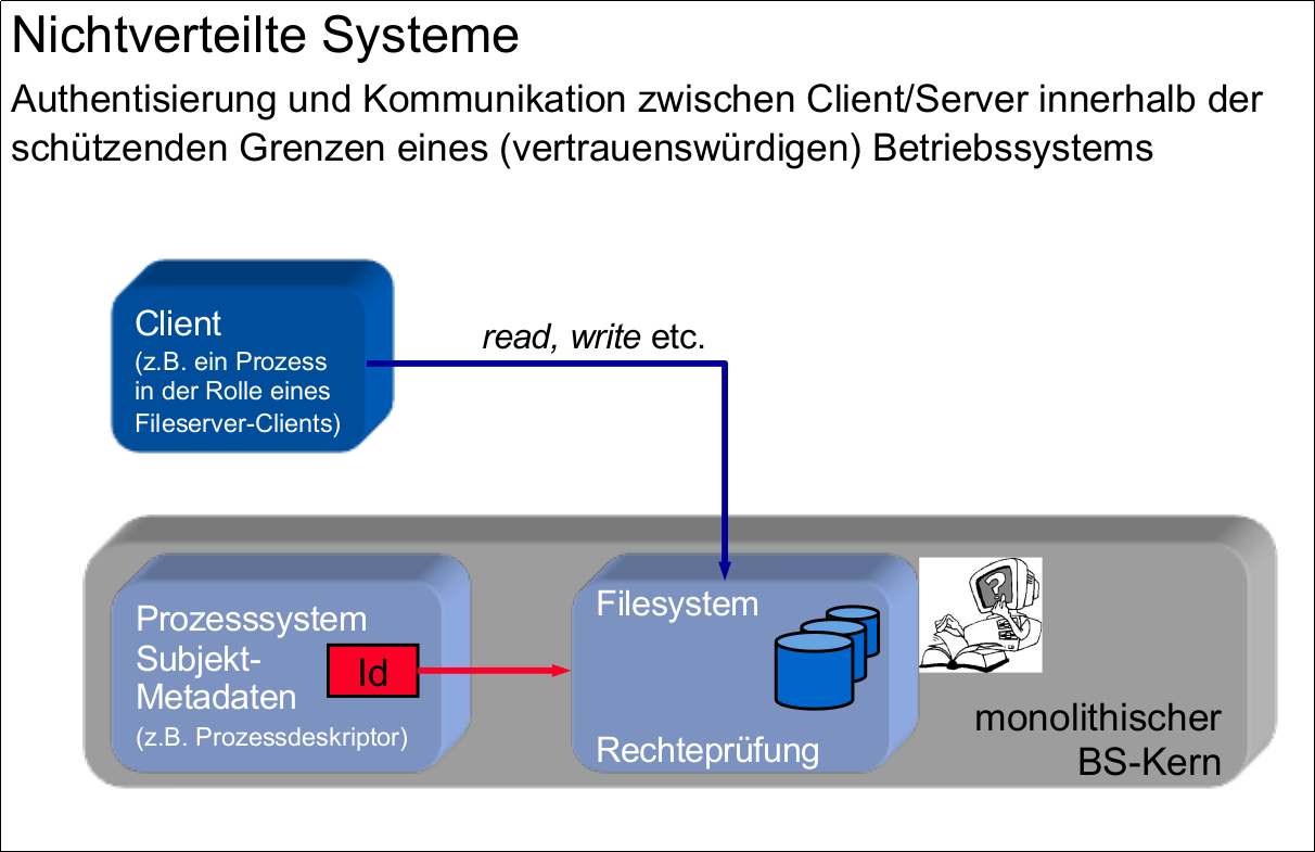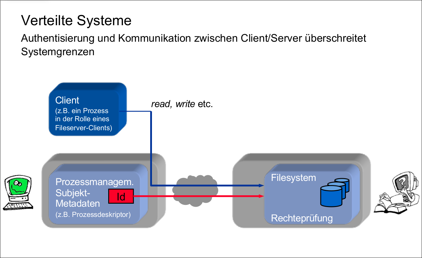 | Auftragsorientierte Modelle (Das Client/Server-Modell) (IT-Sicherheitsaspekte des Client/Server-Modells) (Zugriffsschutz) | - Server muss wissen: Wer ist der Client? => Client-Authentisierung |