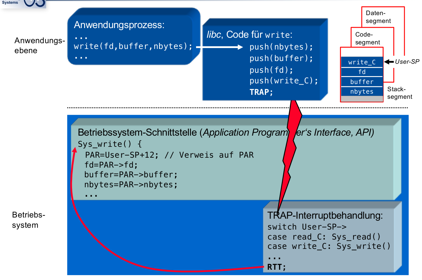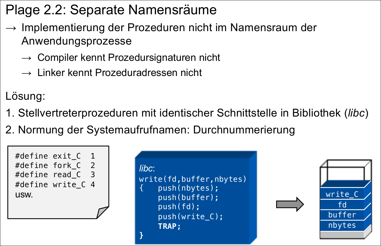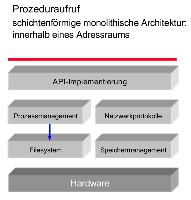 | Funktionsaufruforientierte Modelle (Ein erster Schritt) (Auf genau die ersten 3 Plagen treffen wir auch beim Aufruf von Betriebssystemdiensten) | - werden in prozeduraler Form aufgerufen von Anwendungsprozessen außerhalb des Betriebssystems - sind implementiert und werden ausgeführt innerhalb des Betriebssystems |