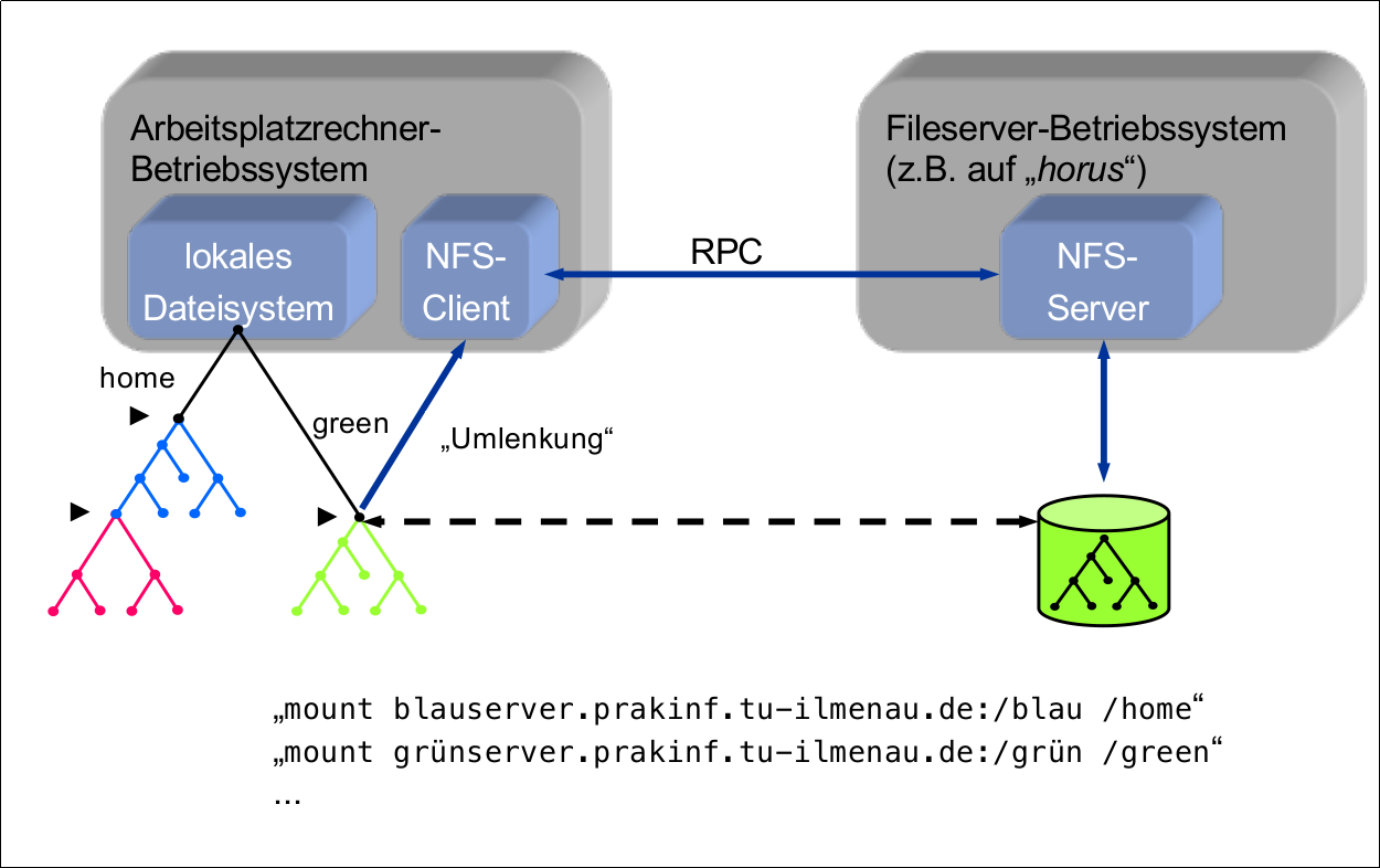 | Funktionsorientierte Modelle (Lange Kommunikationswege) (Interessenkonflikt) (Bequemlichkeit; das "Rundum-sorglos-Paket") (Zugriffstransparenz) | - Zugriff auf entfernte Objekte identisch mit dem Zugriff auf lokale Objekte |