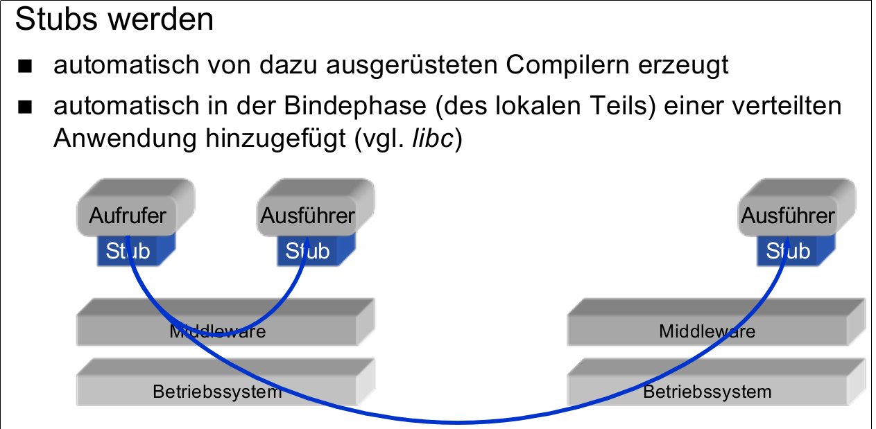 | Funktionsaufruforientierte Modelle (Wo kommen Stubs nun her?) (Aufruf von RPCs-in beliebigen verteilten Anwendungen) | - dynamische, anwendungsspezifische Generierung - Stubs werden von dazu ausgerüsteten Compilern erzeugt |