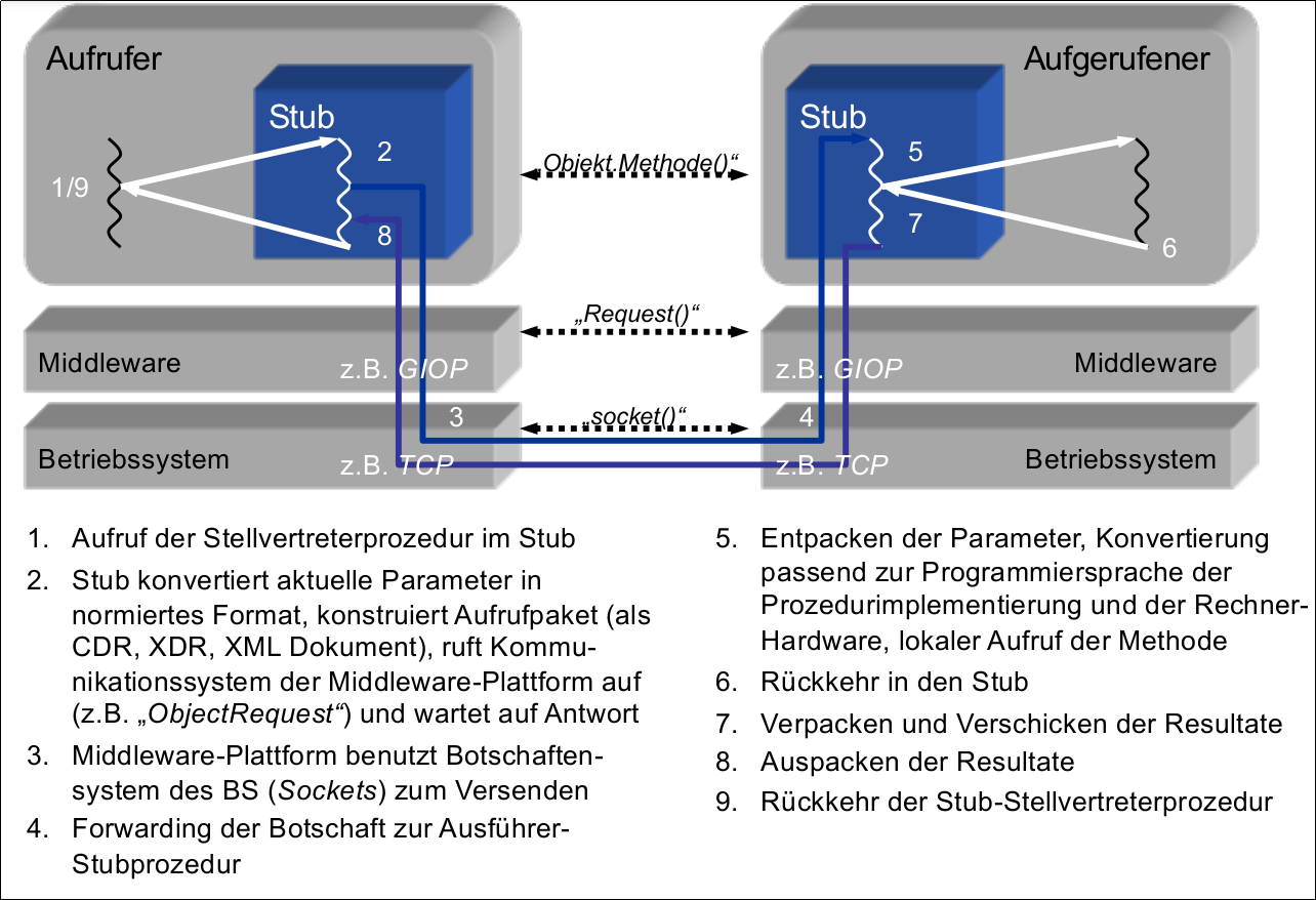 | Funktionsaufruforientierte Modelle (Dynamischer Ablauf eines RPCs) | |