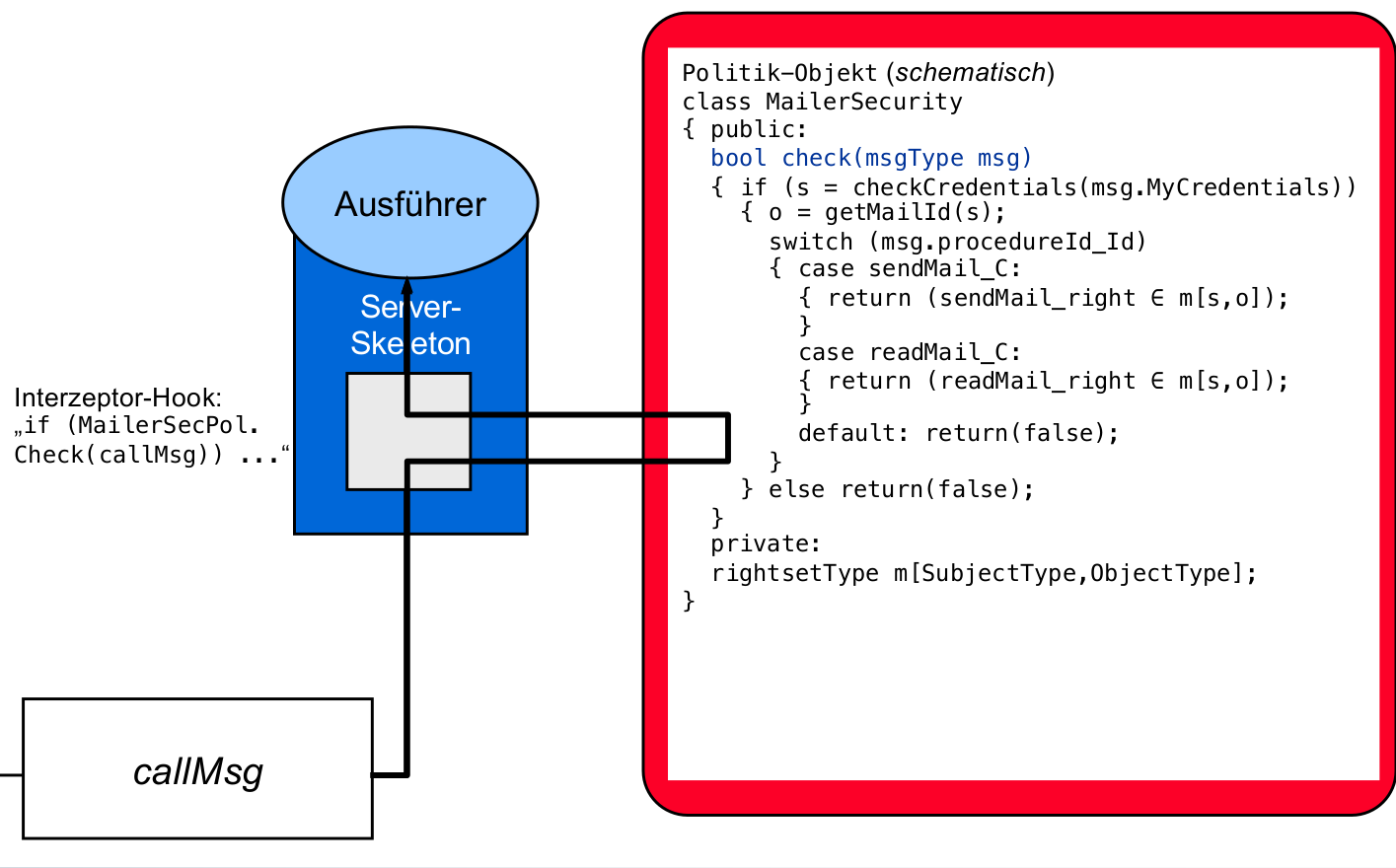 | Funktionsaufruforientierte Modelle (Die 7 Plagen verteilter Systeme) (Plage 6) | - Offene Kommunikationswege => IT-Sicherheit -> Beobachtbarkeit der Kommunikation -> Veränderbarkeit der Kommunikation -> Verhinderbarkeit der Kommunikation -> Identifikation und Authentisierung von Aufrufer und Ausführer |