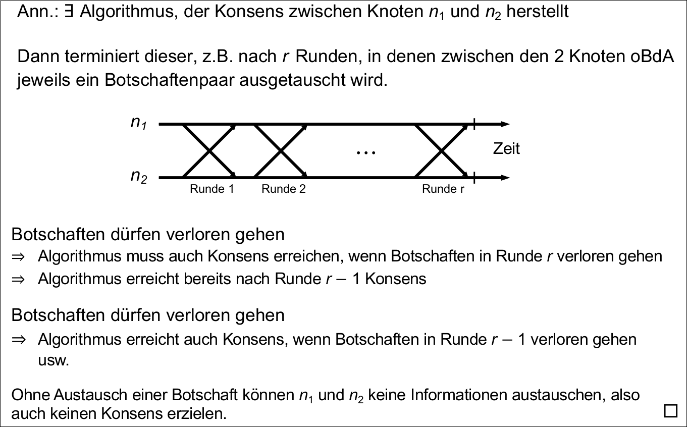 | Funktionsorientierte Modelle (Partielle Ausfälle) (Fehlermodelle) (byzantinische Fehler) | - ausgefallene Knoten verhalten sich chaotisch bis bösartig - Botschaften können verändert, verspätet, gar nicht eintreffen |