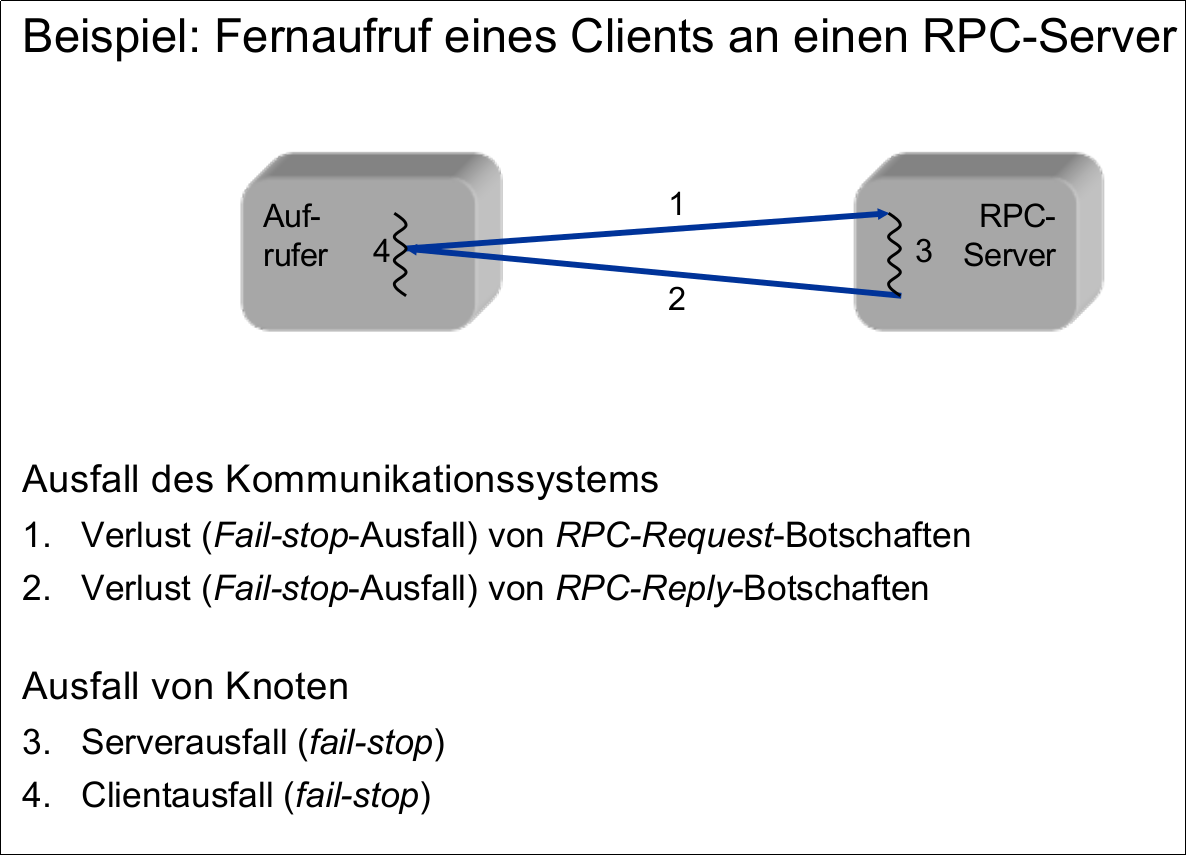| Funktionsorientierte Modelle (Ausfälle: Was kann alles passieren?) (Beispiel: Fernaufruf eines Clients an einen RPC-Server) | |