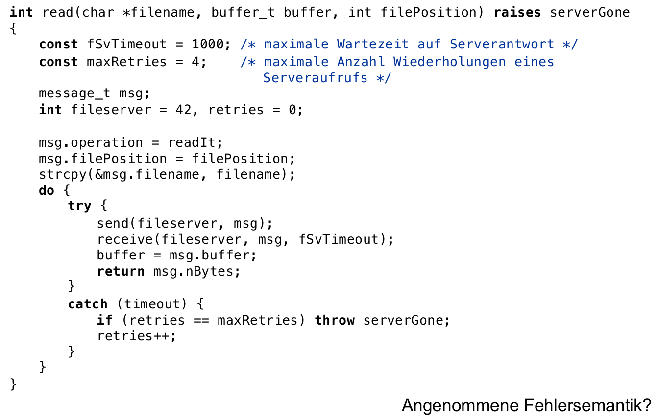 | Funktionsorientierte Modelle (Fehlersemantiken funktionsaufruforierntierter Modelle) (Beispiel: Stub-Prozeduren mit Fehlersemantik) | |