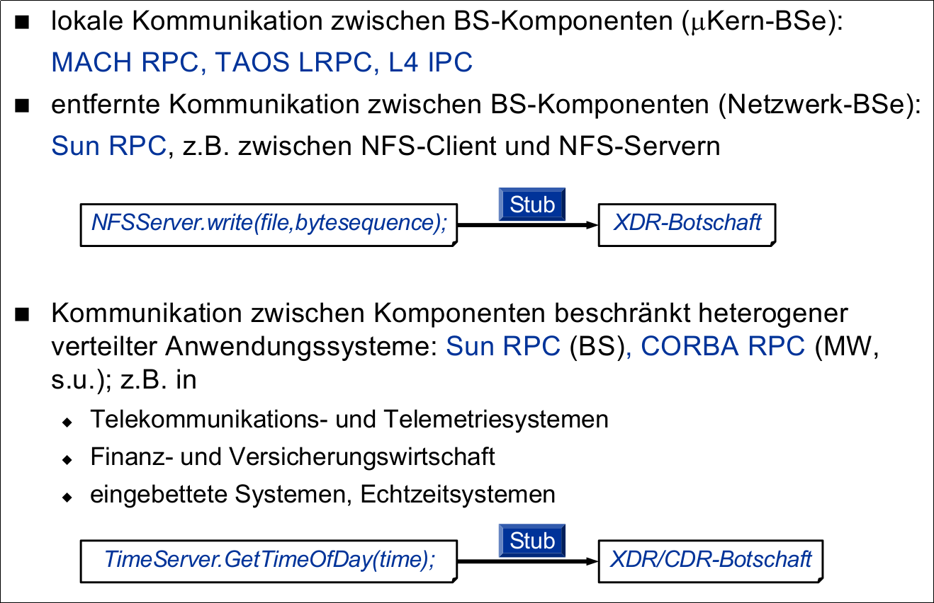 | Funktionsorientierte Modelle (LPC = RPC? => Stubs) (IT-Sicherheit) :( | - in Stubs i.d.R. nicht vorhanden (anwendungsspezifisch) |