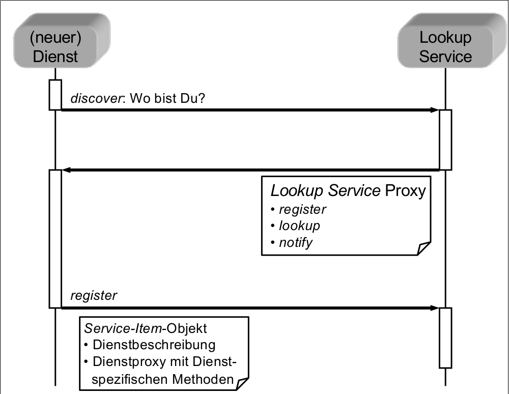 | Wissensbasierte Modelle (Anwendungsbeispiel: Die Jini-Infrastruktur (Java Intelligent Network Infrastructure) (Registrierung von Diensten) (2. Lookup Service) | |