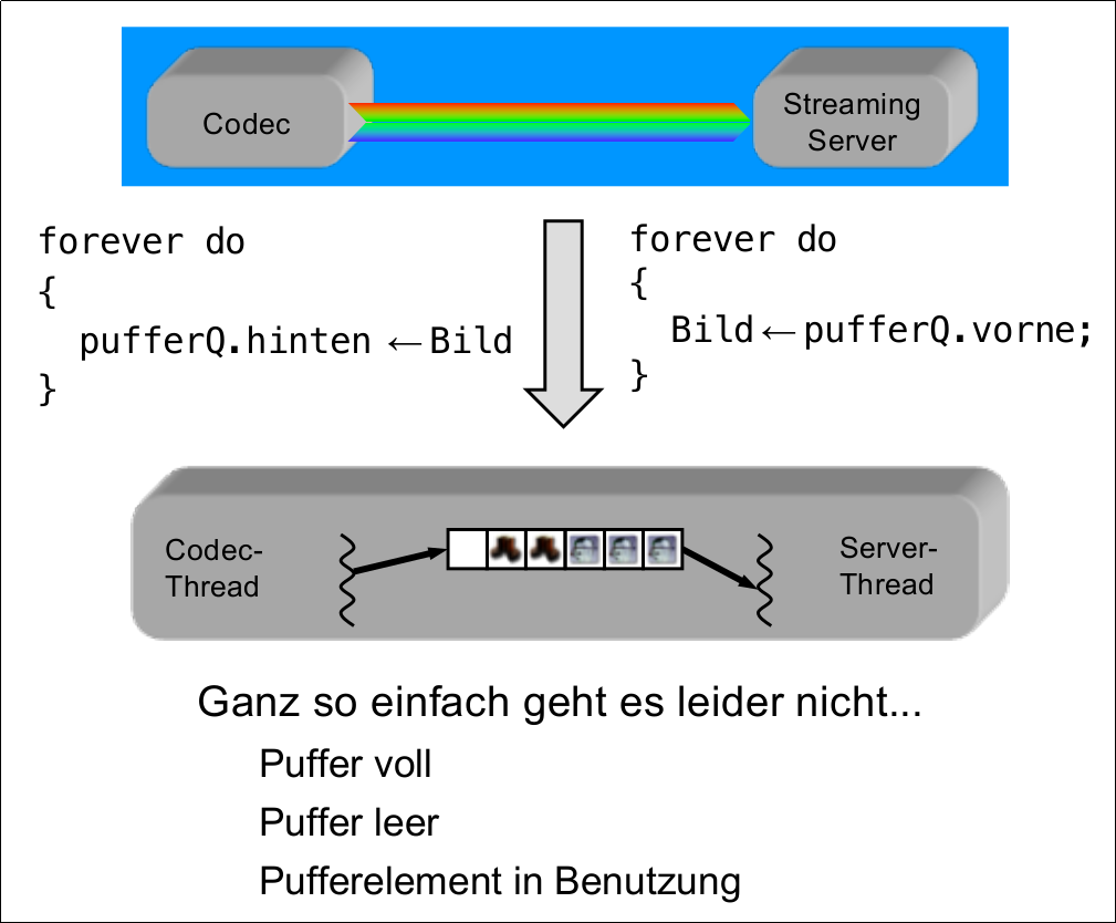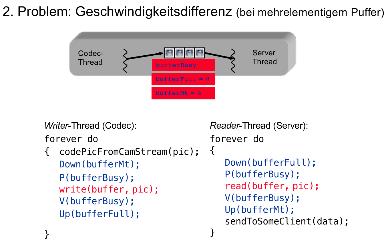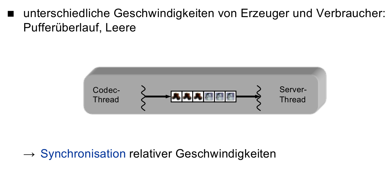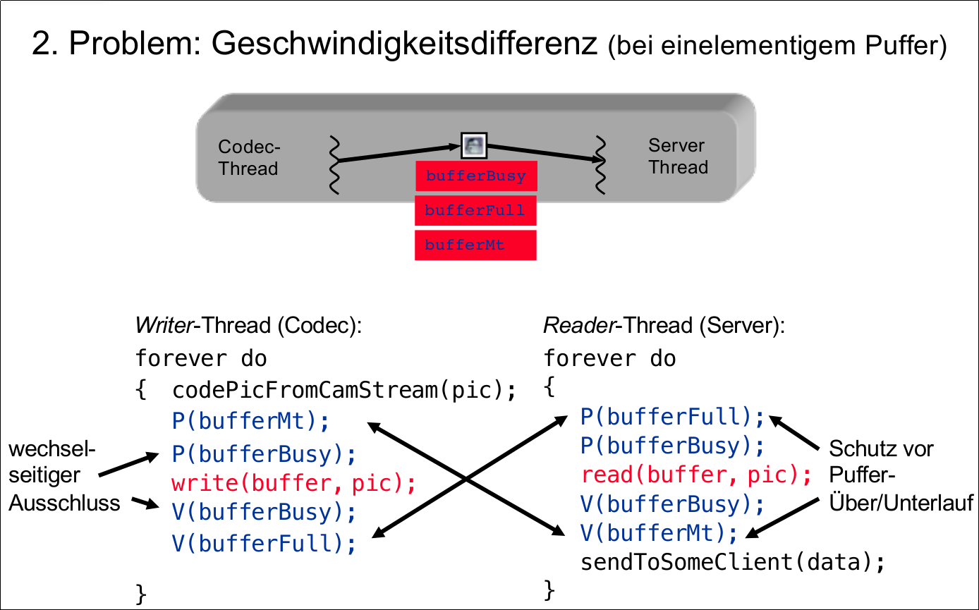 | Wissensbasierte Modelle (Transaktionaler Speicher) (Benutzung von Semaphoren) (2. Problem: Geschwindigkeitsdifferenz (bei einelementigem Puffer)) | |