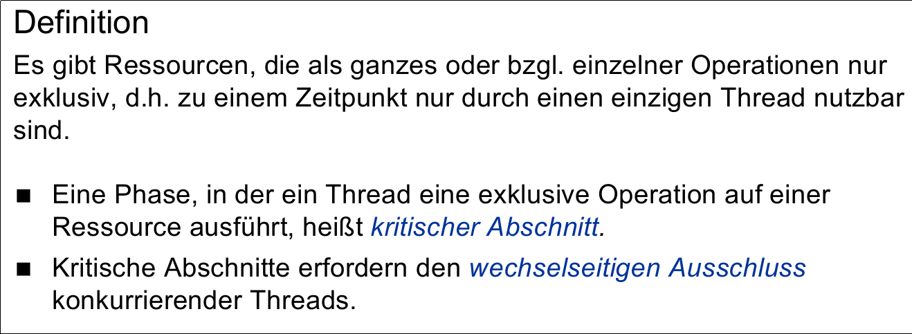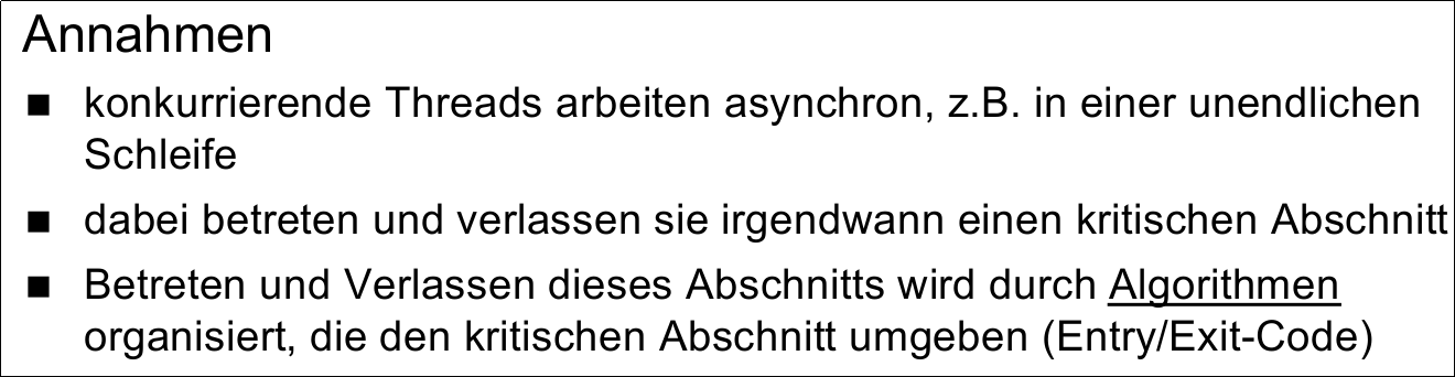 | Wissensbasierte Modelle (Transaktionaler Speicher) (Kritische Abschnitte und wechselseitiger Ausschluss) (Lösung: Synchronisationsmechanismen) | - Semaphore - Hoare'sche Monitore |