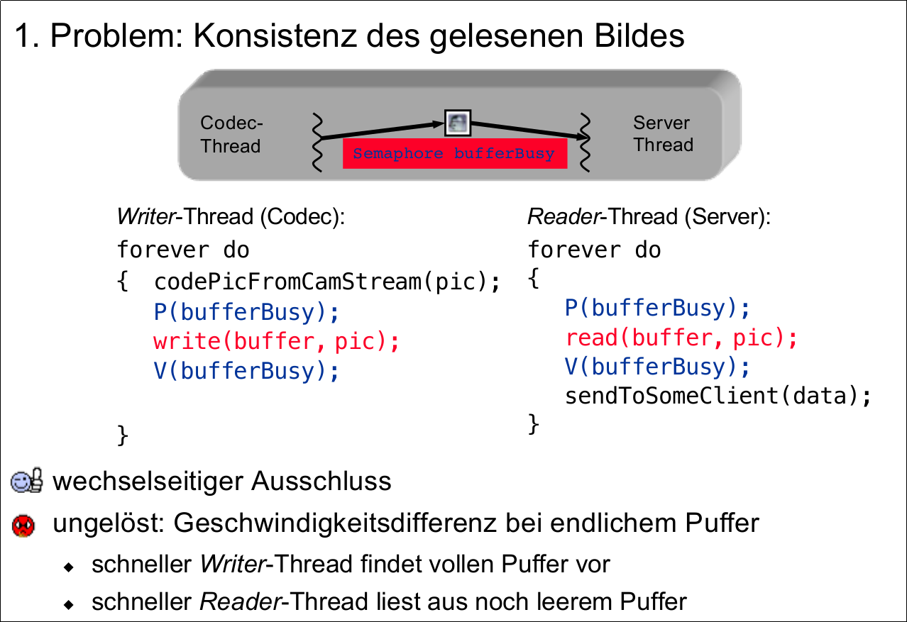 | Wissensbasierte Modelle (Transaktionaler Speicher) (Benutzung von Semaphoren) (1. Problem: Konsistenz des gelesenen Bildes) | |