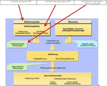 | Erklärungsmodell von Unfällen und arbeitsbedingten Erkrankungen: Ordnern Sie die nachfolgende Begriffe den einzelnen Feldern zu! - Gefahrenquelle - Gefährdungsfaktor - Gefahrbringende Bedingung | |