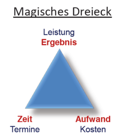 | Was versteht man unter dem "Magischen Dreieck" im Bezug auf Projektmanagement? |