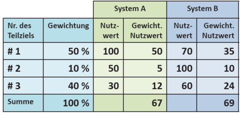 | Definieren sie den Begriff "Nutzwertanalyse" | Die Nutzwertanalyse bewertet verschiedene Alternativen und stellt diese gegenüber. Dazu definiert man Bewertungskriterien und versieht diese mit Gewichtungsfaktoren (vergleichbar mit Hard- / Softwaretest im PC-Magazin). |