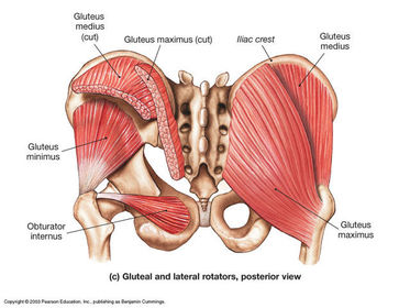 | Äußere Hüftmuskulatur: M. obturatorius internus: Ursprung: Innenfläche der Membrana obturatoria und an ihrem knöchernen Rahmen Ansatz:Fossa trochanterica am Femur Innervation:direkte Äste aus dem Plexus sacralis L5 – S2 Funktion: Außenrotation, Abduktion und Extension im Hüftgelenk,stabilisiert das Hüftgelenk | Obturatorius internus |