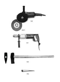 | Der sehr erfahrene Einbrecher nutzt zusätzlich Spalthämmer, leistungsstarke Elektrowerkzeuge, z. B. Bohrer, Loch- und Stichsägen und einen Winkelschleifer mit einer Scheibe von max. 230 mm Durchmesser. | Täterprofil RC 6 |