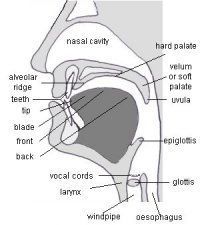 | Production of CONSONANTS | partial of total obstruction of airstream |