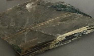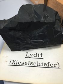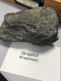 | Graphit tafelige bis blättrige Kristalle mich sechseckigem Querschnitt, oft schiefrige Aggregate, feinschuppig 1 vollkommene Spaltbarkeit schuppt leich ab (färbt grau) | |