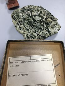 | Aktinolith (Strahlstein) in Paragonitschiefer | |