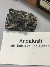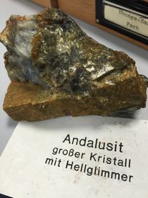 | dicksäulige Kristalle mit viereckigem Querschnitt, der oft ein dunkles Kreuz aufweist 1 schlechte Spaltbarkeit | |