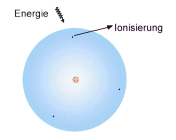 | Was ist die Ionisierungsenergie? | Da sich die Protonen und Elektronen in einem Atom gegenseitig mit ihren Anziehungskräften beeinflussen, muss also Energie aufgewendet werden, um ein Elektron aus einem Atom zu entfernen. Das ist die sogenannte Ionisierungsenergie. |