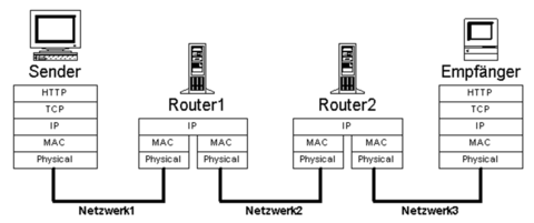 IP(Netzwerk-Layer) | Realisiert weltweites Netzwerk; verbindungslos mit Paketen; Adressierung/Routing der Pakete; |