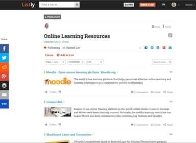 | listly: Schicke Lesezeichen-Listen mit anderen teilen | ->Social Bookmarks mit Vorschau und Text im eigenen Layout/Design; Sharing in alle Social Media Kanäle. In der kostenpflichtigen Version sind nicht-öffentliche Listen/Gruppen möglich. Ähnlich wie diigo-Listen, aber optisch anspruchsvoller. Gut für: gemeinsame Recherche. |