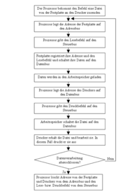 | Nadeldrucker | + hohe Geschwindigkeit, sehr günstig pro Seite + sauberes Druckbild + Durschläge möglich - sehr laut - sehr schlechte Grafikfähigkeit Es gibt eine Leiste mit Löcher, bei jedem dieser gibt es eine Nadel und mittels eines Stößl wird diese Nadel auf ein Farbband gestoßen. Der Stößel wird durch eine Wippe nach vorne gebracht und durch eine Feder wieder zurückgeholt. |