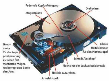 | Kenntnisse über Zugriffszeit von Festplatten | Die gespeicherten Daten sind über die gesamte Oberfläche der Magnetscheibe verstreut. Deshalb ist es wichtig, wie schnell der Schreib-/Lesekopf eine bestimmten Stelle auf der Plattenoberfläche ansteuern kann. Je schneller der Kopf die gewünschte Position erreicht, desto eher kann er Daten lesen oder schreiben. Sehr schnelle Modelle haben Zugriffszeiten von 8 Millisekunden oder weniger. Werte von 12 bis 14 Millisekunden liegen im Mittelfeld. |
