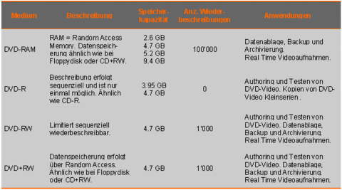 | Fachbegriff BD ROM, BD-R, BD-RE | BD-ROM – ausschließlich lesbares Format für die Ausgabe von Spielfilmen in HD, Spielen und Software BD-R – einmalig beschreibbares Blu-ray Format, das R steht für Recordable BD-RE – wiederbeschreibbares Blu-ray Format, die Abkürzung RE steht für Rewriteable |