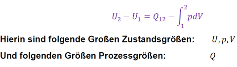 | Der erste Hauptsatz für ein geschlossenes System lautet in integrale Form:(Erläutern Sie dabei den Typ der auftretenden Grössen) |