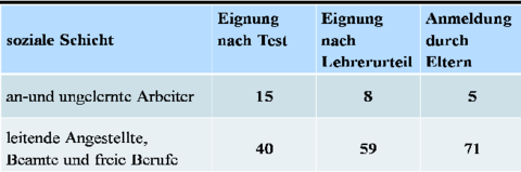 | 1964 beschrieb der Lehrer Georg Picht in einer Artikelserie die Gefahr einer Katastrophe im deutschen Bildungswesen: - zu niedrige Bildungsausgaben - durch soziale Selektivität zu wenig Leistungsfähigkeit und Gerechtigkeit | Eignung und Anmeldung zum Gymnasium Ende der 1960er Jahre in %: |