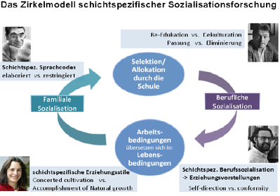 | Erkenntnisinteressen schichtspezifischer Sozialisationsforschung: | Wie wirken sich unterschiedliche soziale Kontexte / schichtspezifische Herkunftsfaktoren auf die Entwicklung aus? → Hier vor allem die Forschung zu schichtspezifischen Ungleichheiten Wie bilden sich Kompetenzen aus, mit denen sich jemand |