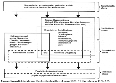 | 5. Außer den Sozialisationsinstanzen beeinflussen auch Arbeit, Freizeit, Unterhaltung und soziale Kontrolle betreffende soziale Organisationen und Systeme die Persönlichkeitsentwicklung. | |