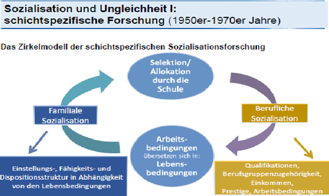 | Fazit "Schichtspezifischer Sozialisationsforschung": | 1. Enger Zusammenhang zwischen sozialen Ausgangsbedingungen und Schulerfolg 2. Sozialstrukturelle Ungleichheiten haben soziale Konsequenzen für die Lebensführung und die Lebenschancen Heranwachsender 3. Chancenreproduktion erfolgt zirkelförmig |
