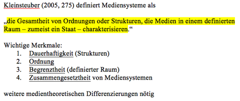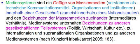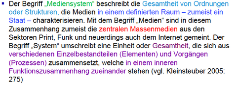 | Definitionsversuch Kleinsteuber (2005) Mediensystem | |