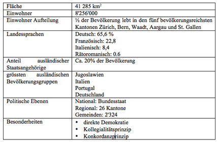 | demografische und politische Merkmale der Schweiz | |