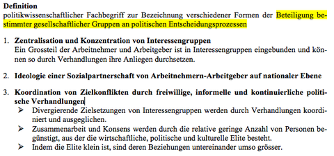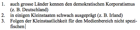 | Kleinstaatlichkeit - Auswirkungen der Kleinstaatlichkeit auf Politik und Wirtschaft - Demokratischer Korporatismus: Kritik | |